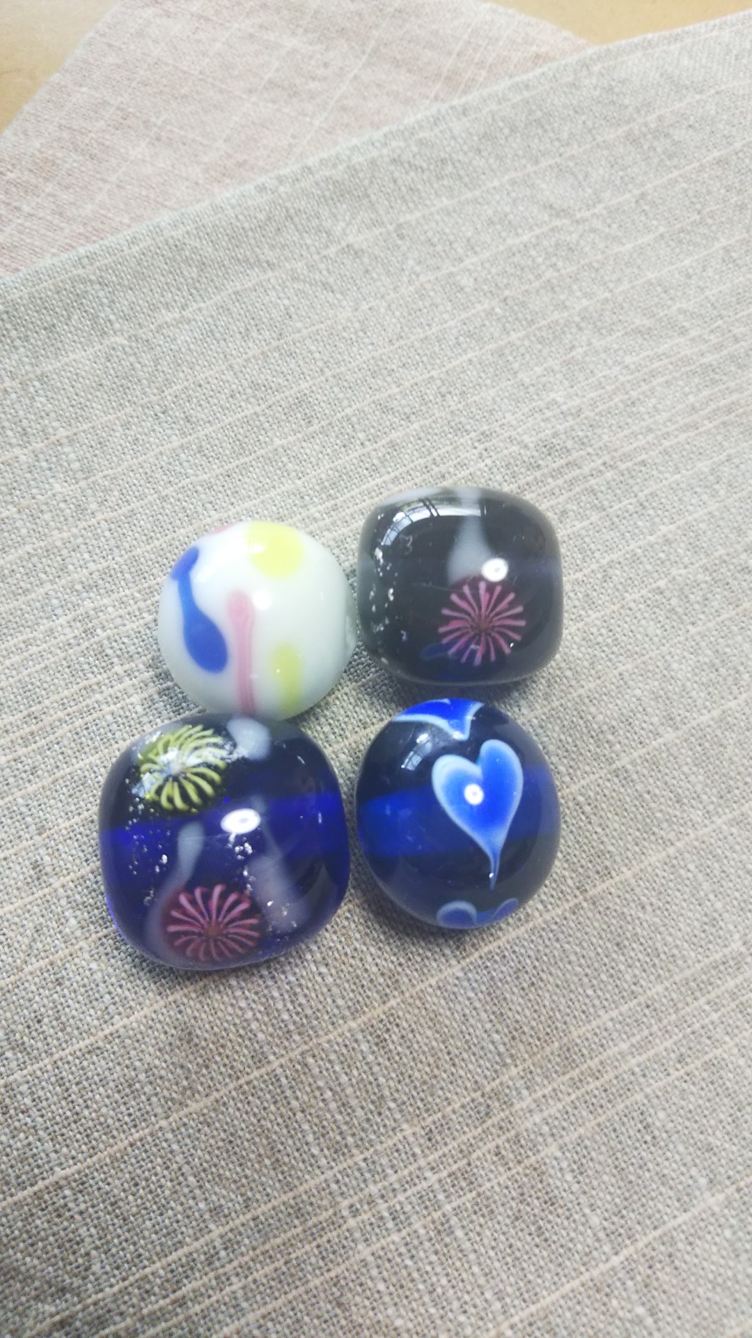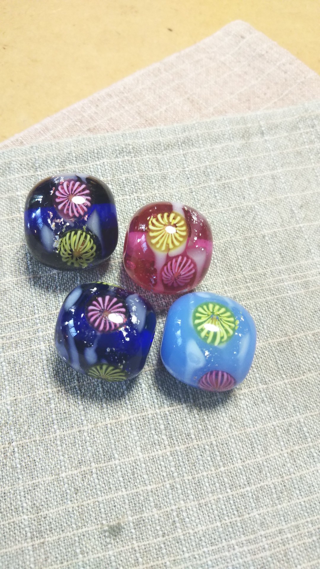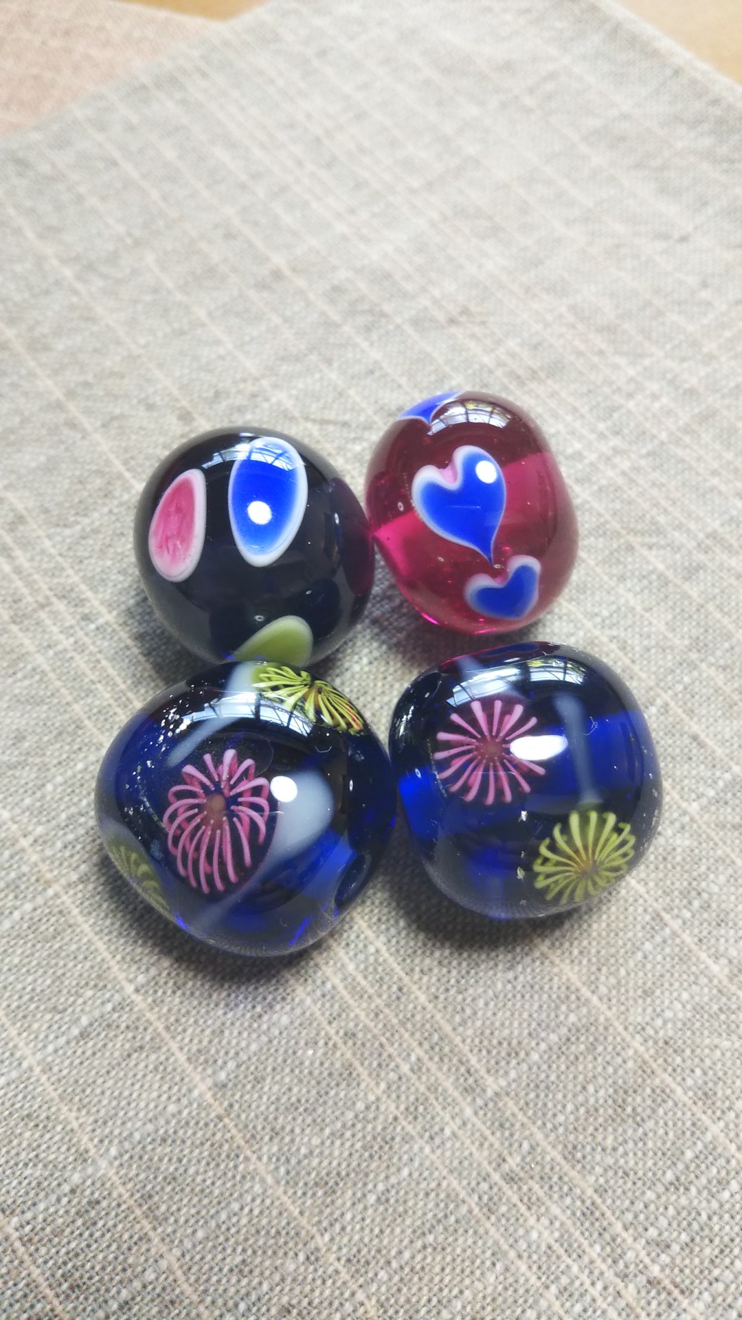 8月の花火のとんぼ玉制作体験、お客様作品パートⅠ。