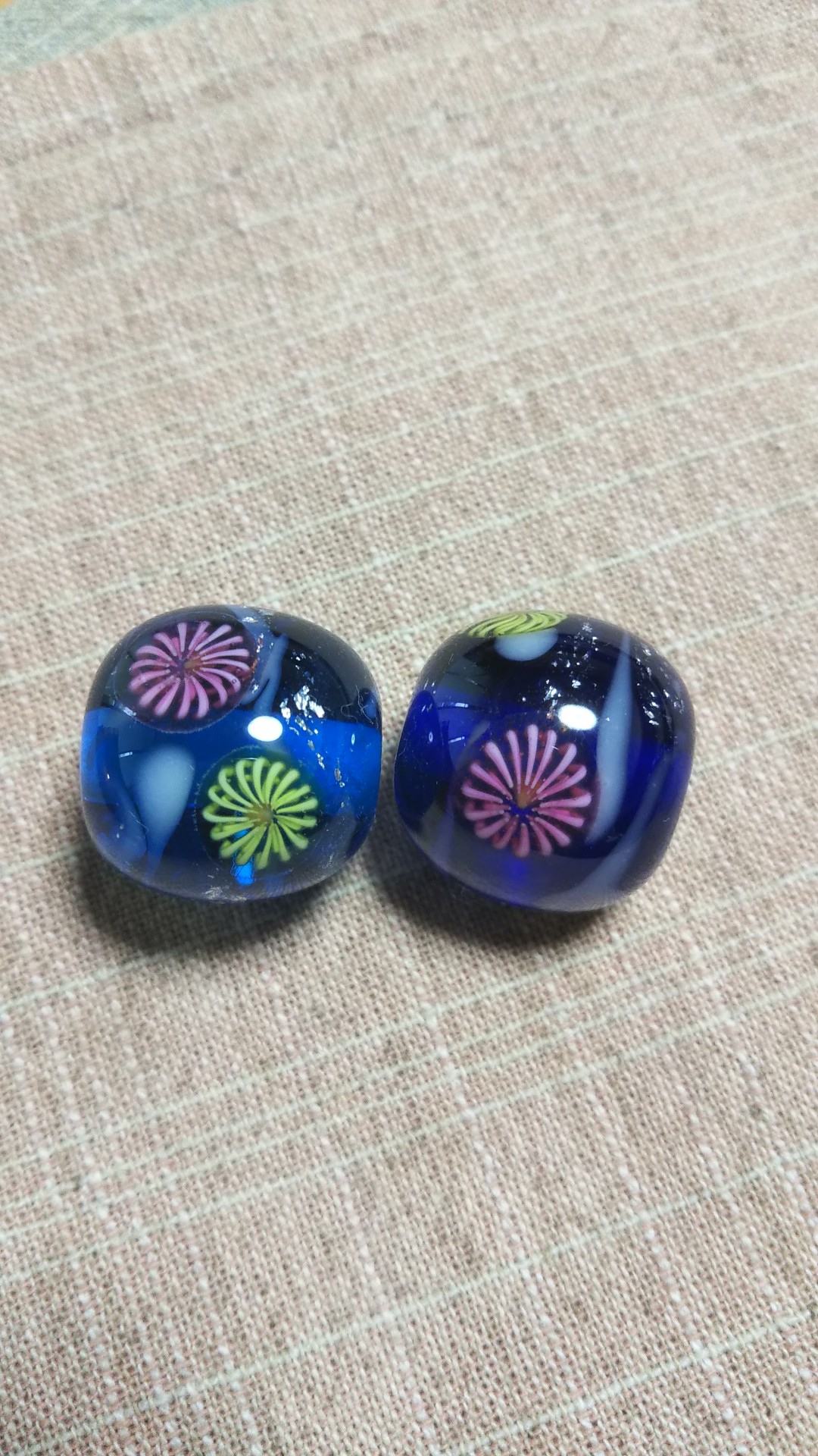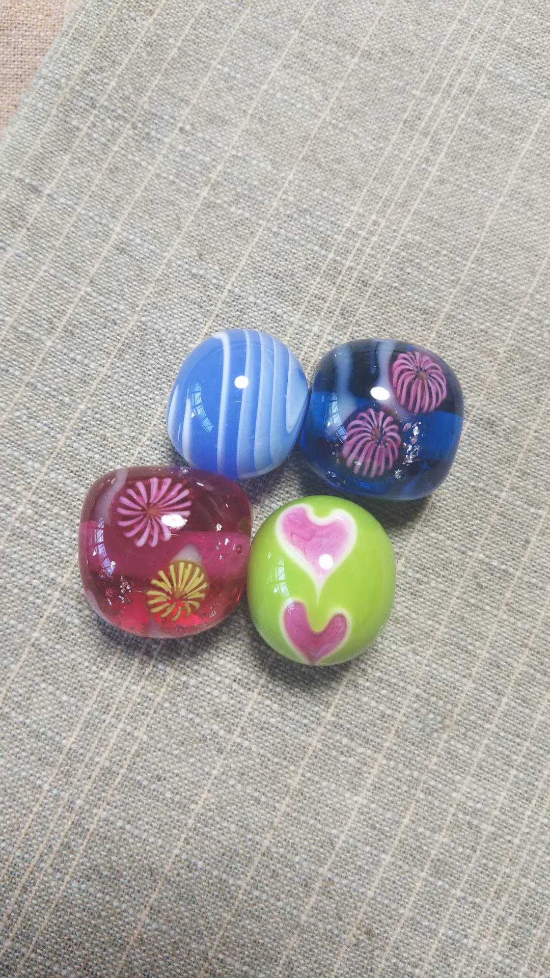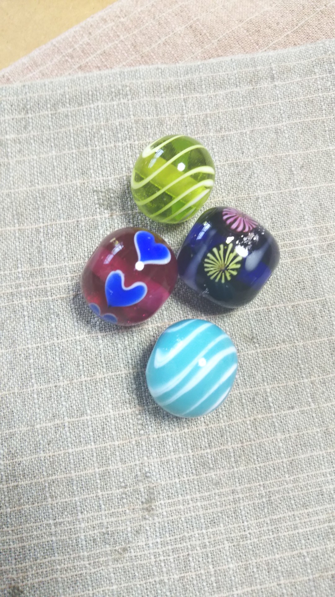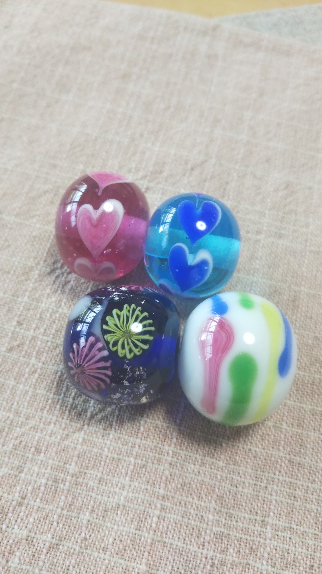 8月の花火のとんぼ玉制作体験、お客様作品パートⅠ。