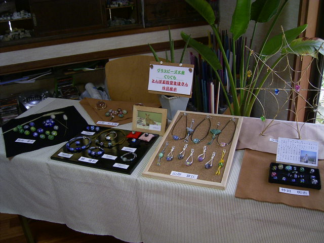 とんぼ玉教室生徒さん作品展示」が始まりました。